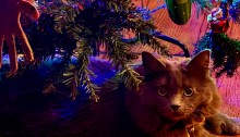 Izzy under the tree. Terrific daughter Elisabeth texted a photo of kitty Izzy under her and George Three’s tree. We’re all glad Izzy and Vinny allowed their pretty tree to stand. Happy holiday to all.