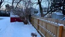 Good line. The wooden-fence line is holding up to its second season of snow on this side of our backyard. Nice to see the straight line holding up.