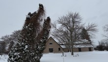 Leaning to the wind? Our Salt Museum stand proudly through the winter’s snow and wind I note during my morning walk at Onondaga Lake Park.