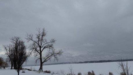 Trying. I could see more of the far shore, I thought as I reached a clearing in my so-cold walk at Onondaga Lake Park. And is that the sun trying to announce itself over there to the left?