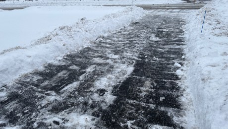 My work. Sometimes the plow company just packs down the driveway snow too much. Oh, once a year I decide I have to go out there afterward and take to the ruts my car made in what they left with my trusty shovel. Hard work!