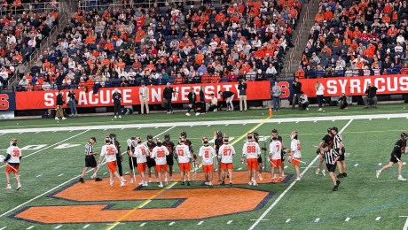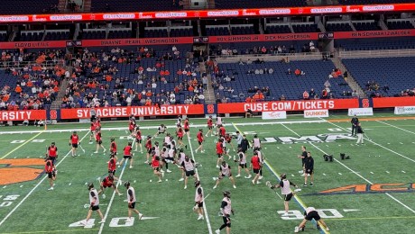 Gettin’ ready. Maryland was 1-0. Syracuse was 2-0. Somebody had to fall. My school had won the last nine meetings between the two teams. I watched my Maryland Terps warm up in our home city of Syracuse with some nervous butterflies fluttering in my stomach. No. 1 vs. No. 2 …