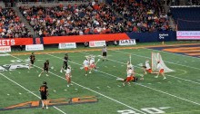 Traveling well. The pocket of Maryland fans sitting below us were ready to show their cheer when the Terps scored a goal. Officially, our name is the Terrapins, but that would require too many letter cards to make their way to a visiting stadium, I think.