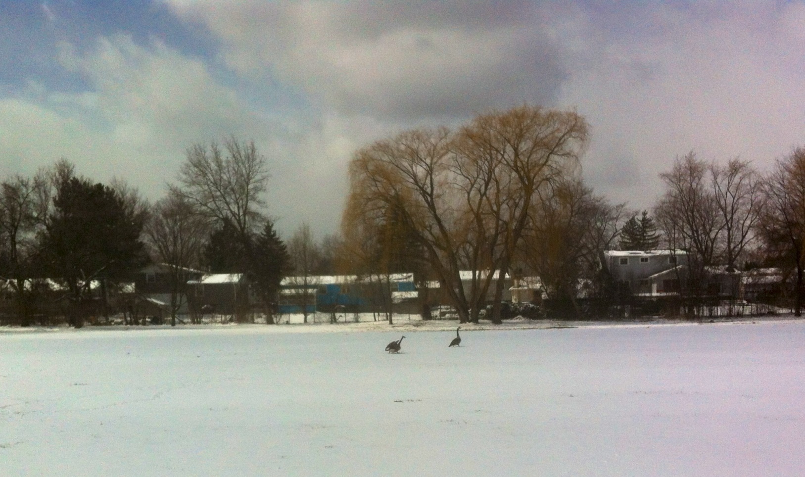 On a blustery Eastwood stroll with dear Dogamous Pyle, aka Ellie B, we encountered two resting geese in Norwood Park.