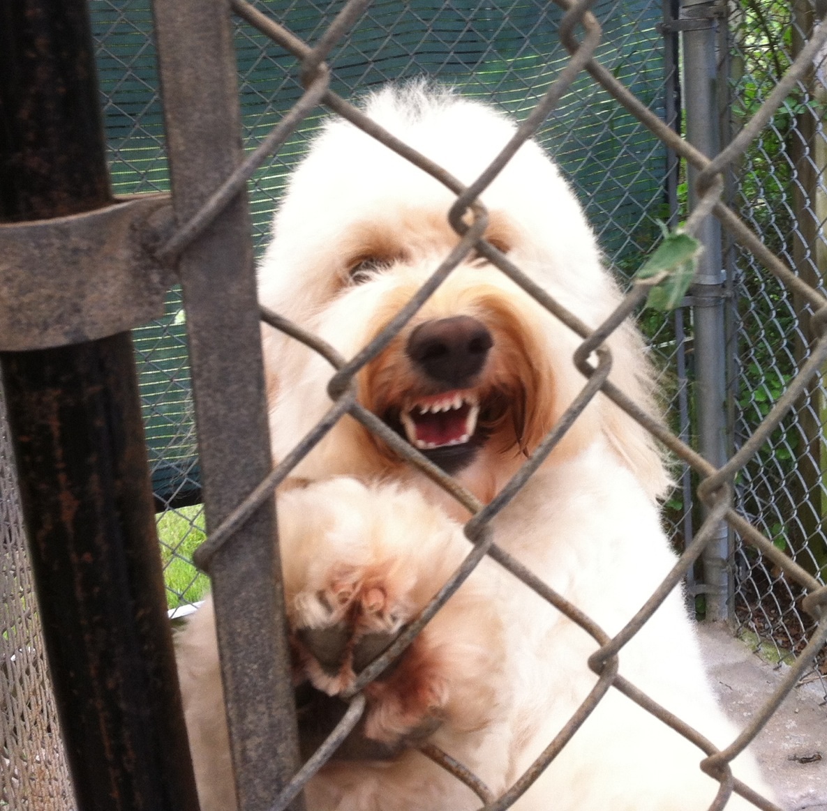 In any case, the white dog crazily jumped around his crate as I attempted to capture his pearly whites. It took me a dozen tries to get this Colgate moment.