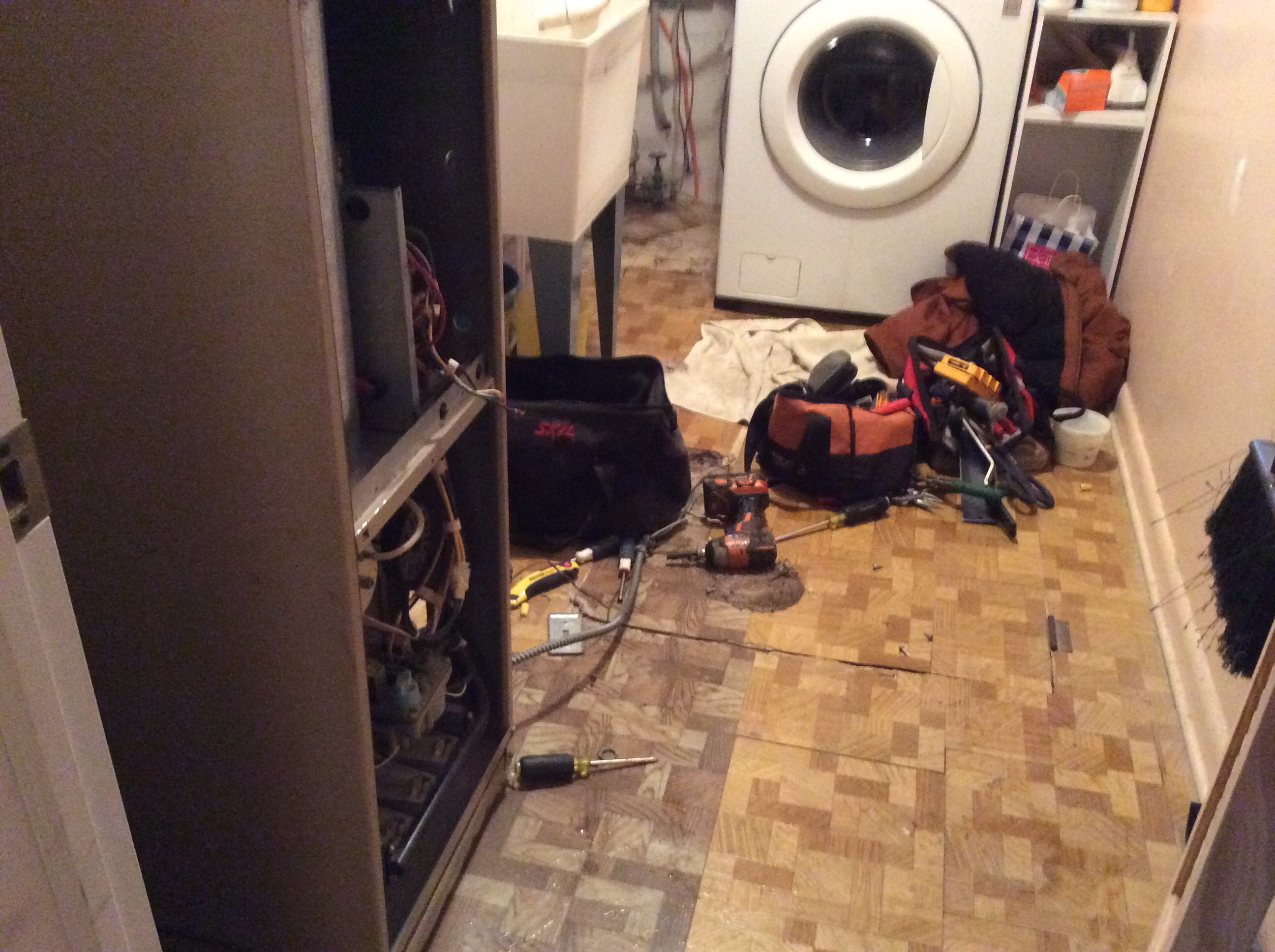 The puh-pow, it turns out, was caused by a buildup of the primer used before connecting the PVC pipes venting the new furnace sideways and out the wall instead of the roof. The fumes and maybe even some primer had collected down a pipe and inside the furnace. When one of the guys struck his lighter — and just now I realize I never quite got why he struck his lighter, because they all smoked their cigarettes out on the driveway — it set that primer off.