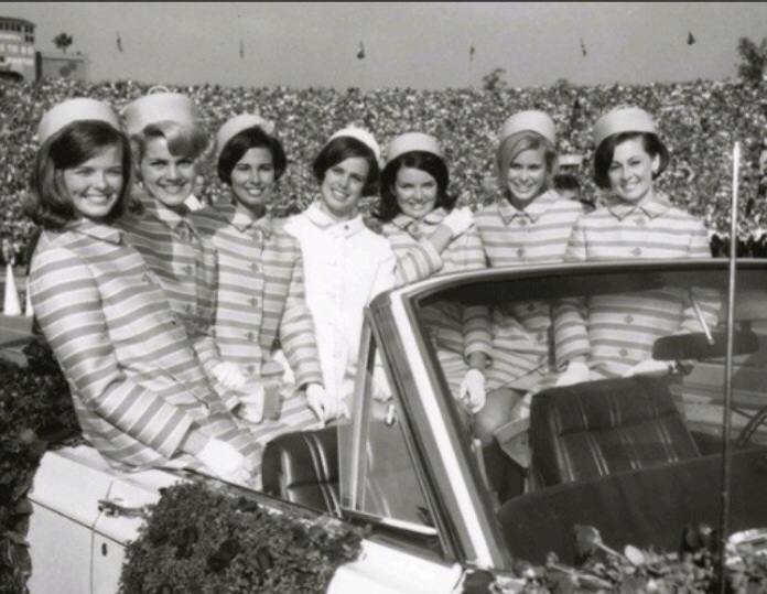 The Tournament of Roses court is ushered into the Rose Bowl in 1968. (latimes.com, from Rose Parade archives)