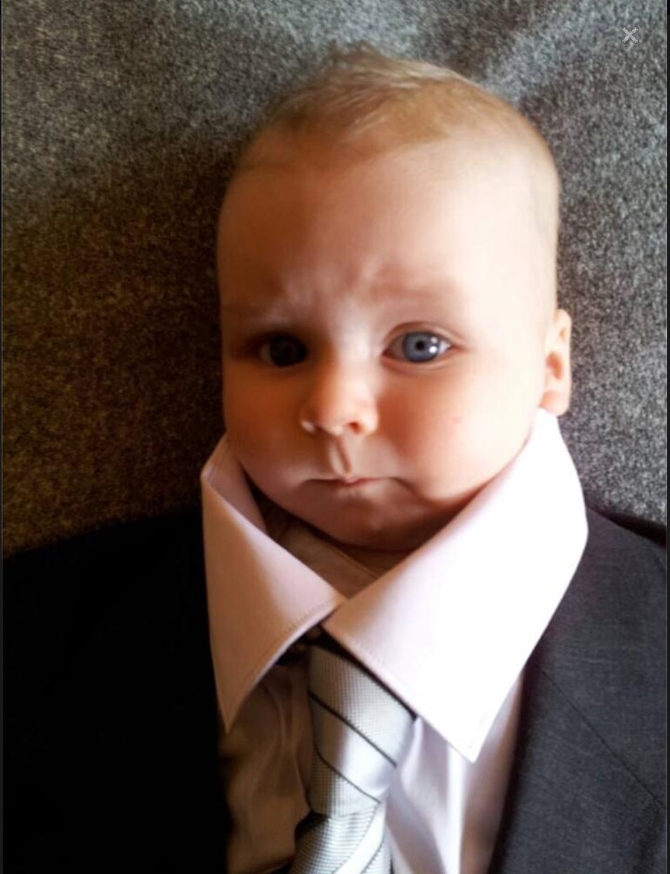 I think he could get a job tomorrow based on his business attire alone Mark. Possibly could use a bit of tailoring though, maybe a tuck in at the collar. I’m just wondering how they got him to sit still long enough to dress him like that. My kids fought like tigers when I just put soft outfits on them. Dressing them up sounded like I was abusing them in some horrid manner, which I suppose in their baby minds, I was.