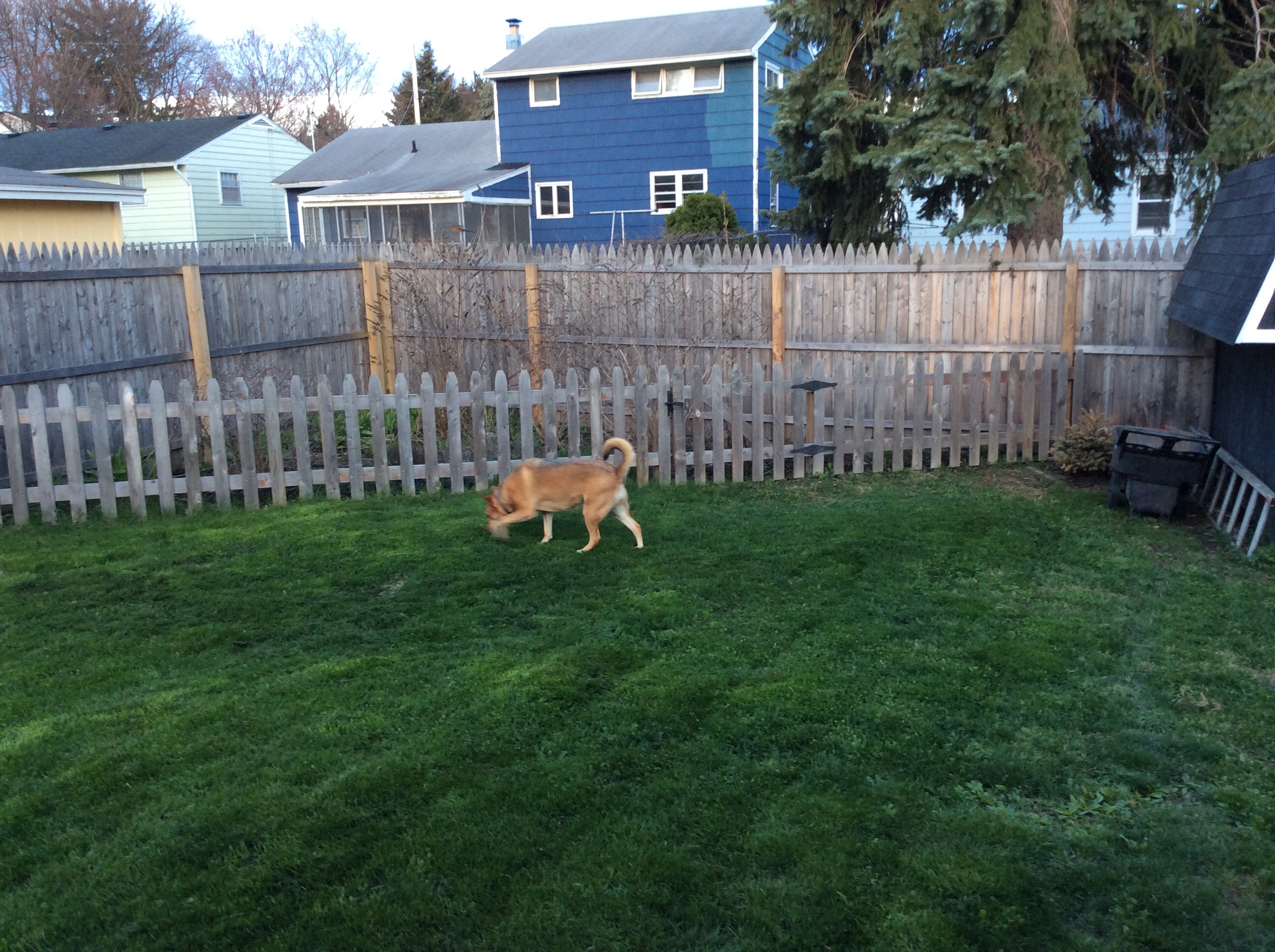 Two dogs. That must be a bundle of fun. Show your wife my blog and say, “Look, Karen carries the scooper in their yard in Syracuse ……”
