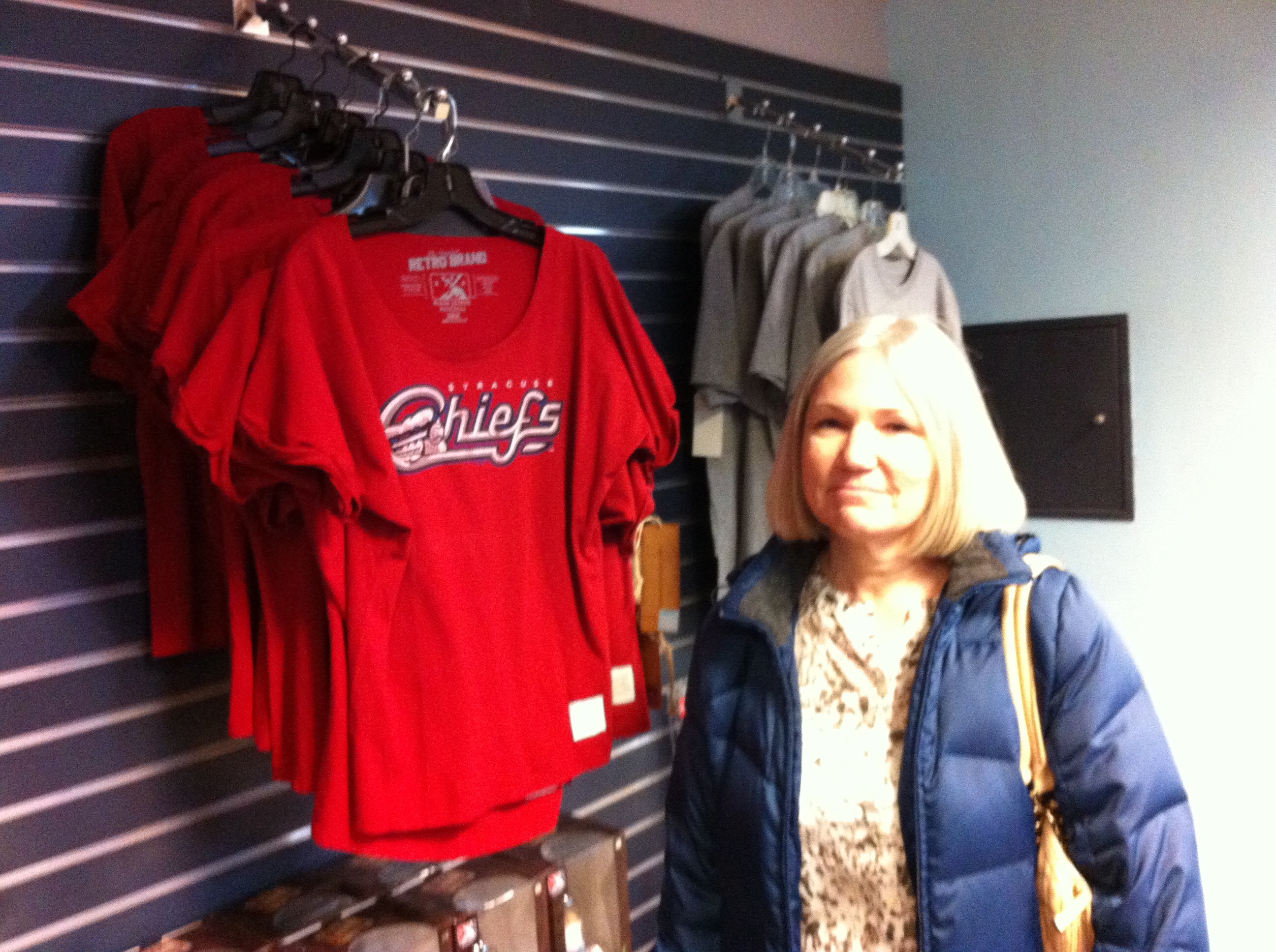 My dear wife Karen ponders the good in NBT Bank Stadium in Syracuse.