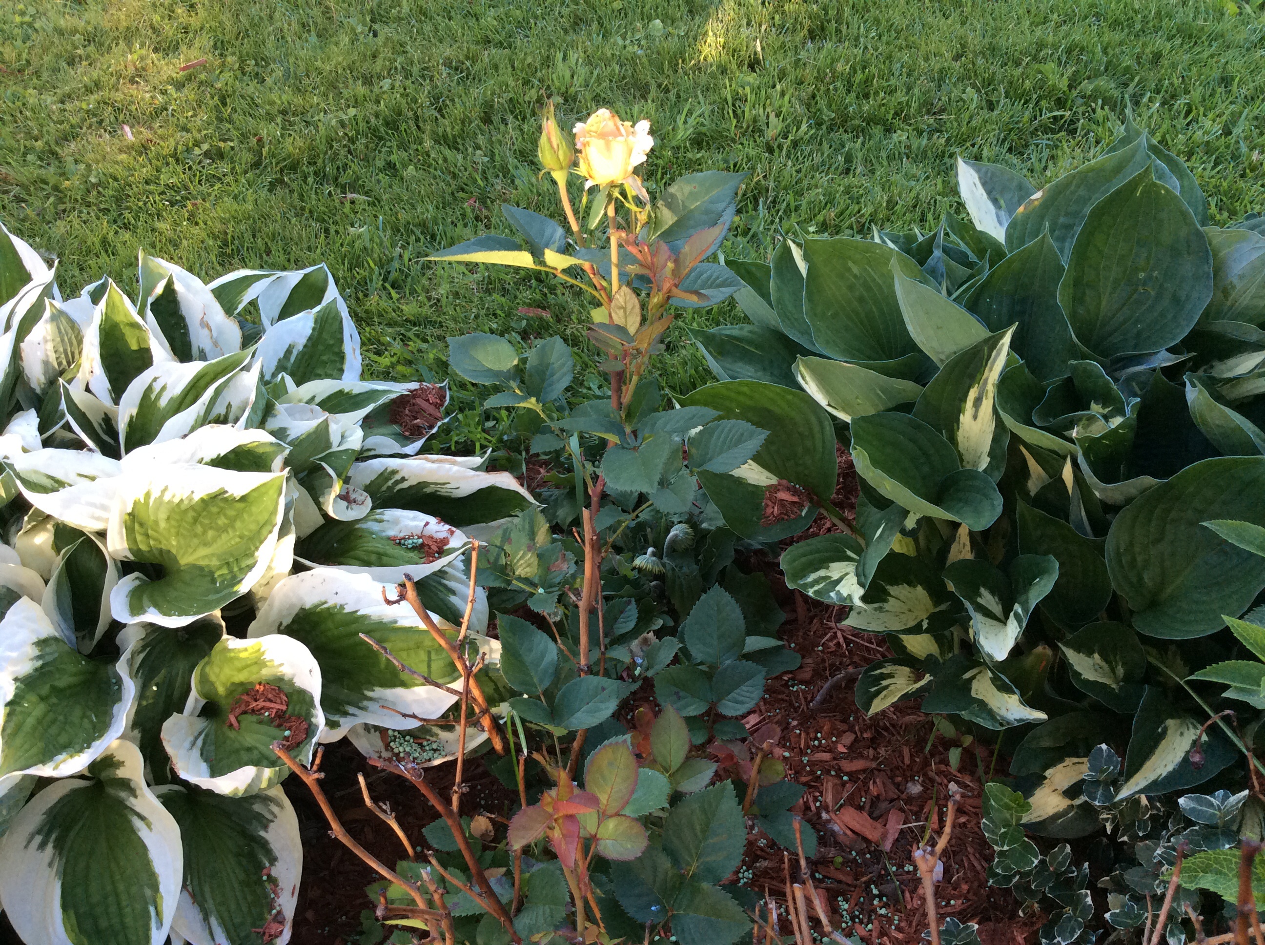 The cycle of your gardens is like the cycle of life. Such a great post with a simple message but profound implications. I like the little red and yellow rose buds, leaving the petals in the grass and the other nice things I see in your garden like the hostas! Pretty gardens, Mark! (and Karen…)