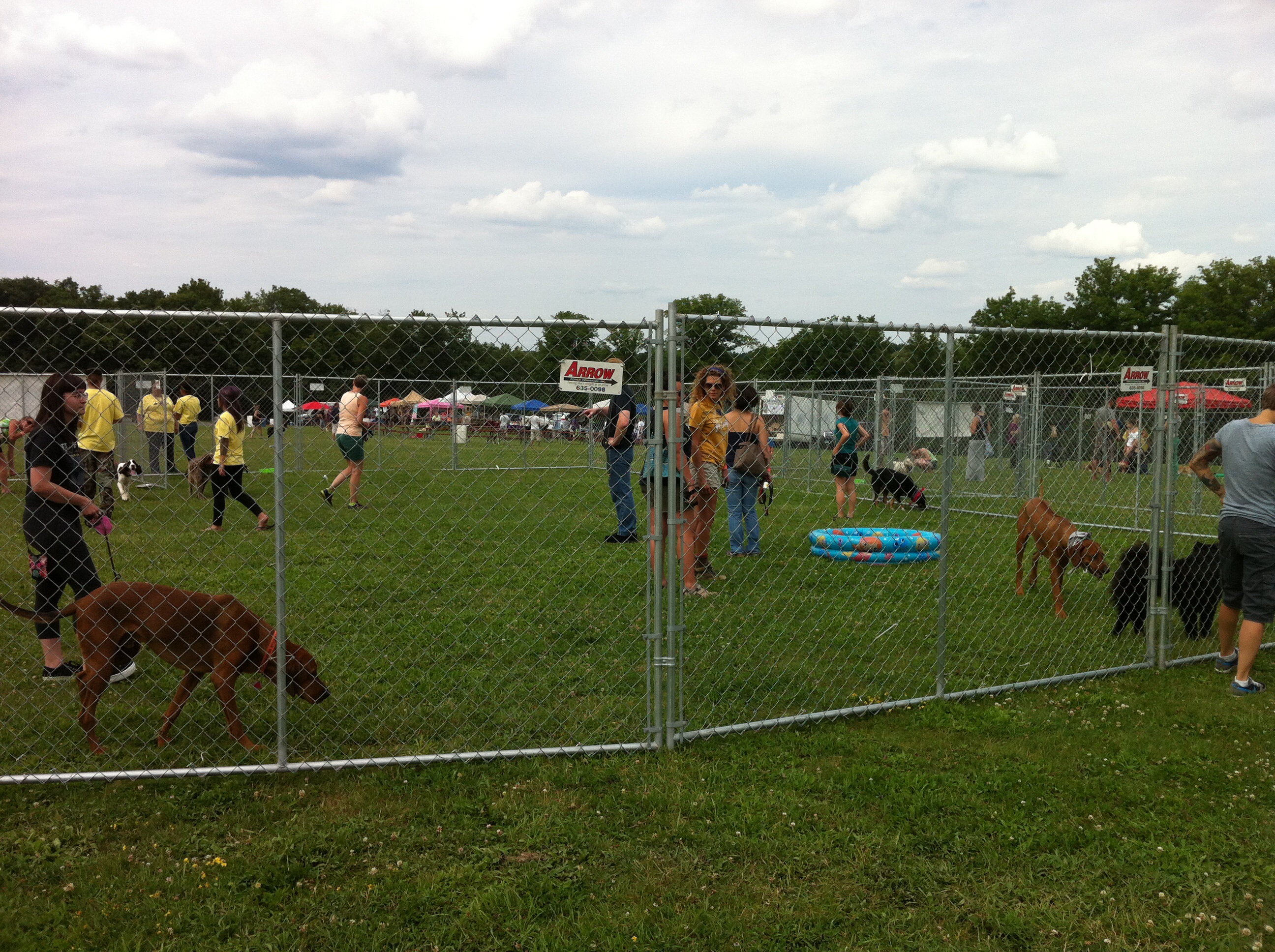 There were sporadic spurts of barking, a stray growl or two, but I did not see one skirmish. Owners were good about pulling dogs back from the first sign of any aggressive behavior. That’s why I get so hacked off at the folks who take their dogs off the leash in open fields at events like this. You bring your dog in the gated area and unleash it with the other unleashed dogs, they’re all on equal turf and act as such. Expectations from the owners are the same, too. But in the field, even those these entitled idiots are quick to fall back on “well MY dog is always well behaved off the leash,” owners NEVER know how an unleashed dog and leashed dog will react toward one another. So I cringe that the unleashed dog will run up to my leashed Ellie B and spook her and cause a conflict, and the unleashed dog will be at an advantage over my leashed pet with the other dog’s owner far off in the distance and unable to control the pet and help. Oy. That’s my greatest fear.