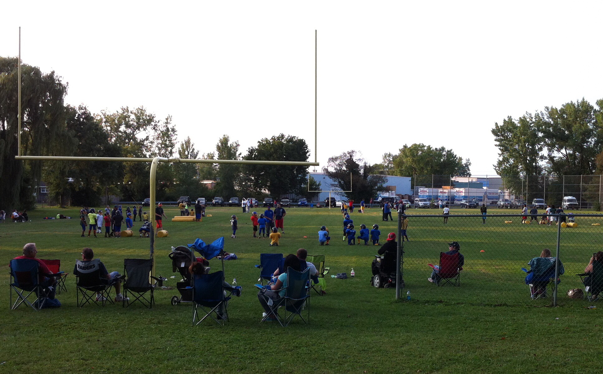 Have you spotted youth football teams practicing in your neck of the woods? Have you had sons or relatives play football, and were you in favor or against it, and why? Yay or nay about my taking pictures of the Tuesday night happenings at Norwood Park for this blog?