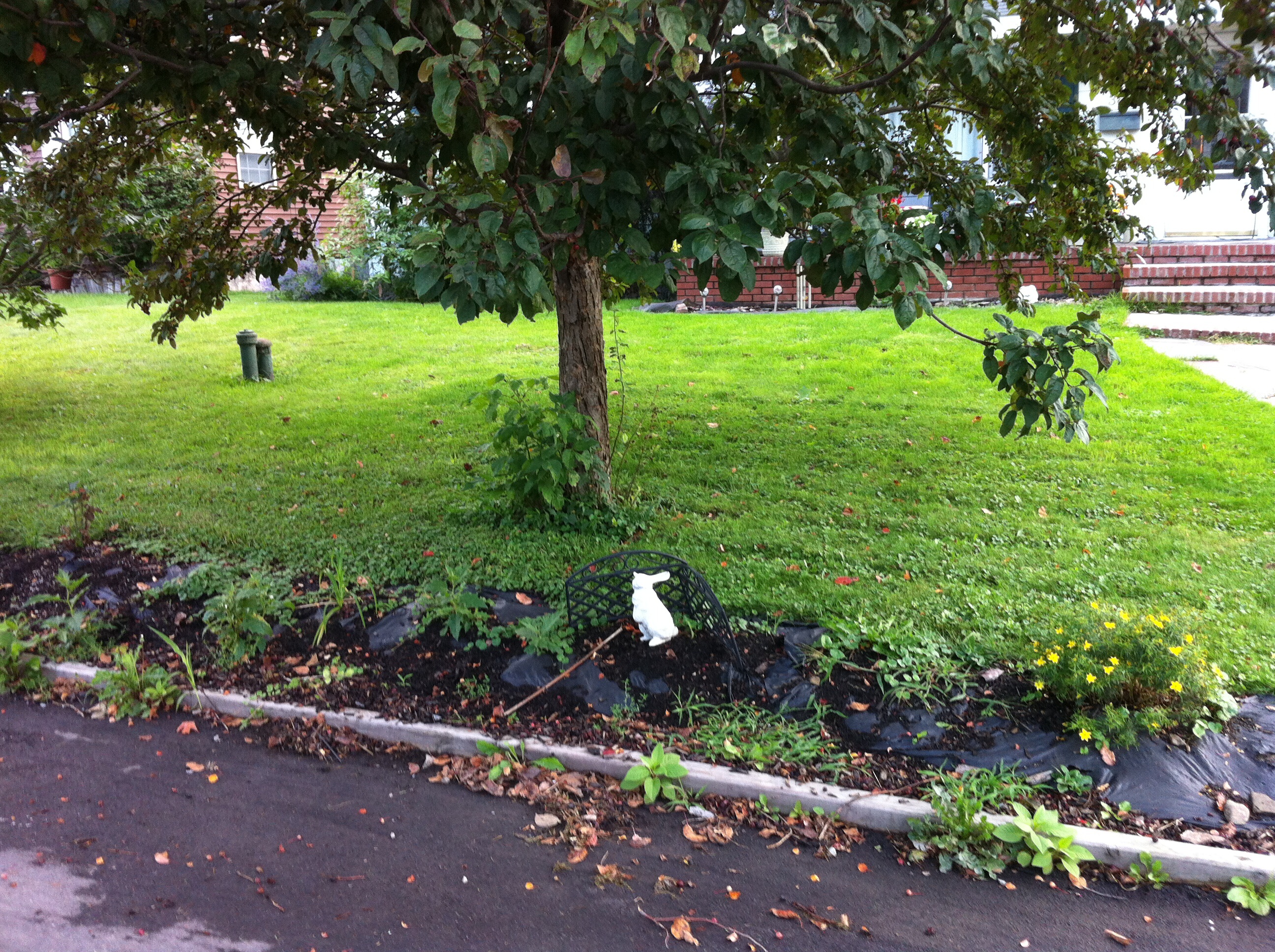 I particularly do not want Ellie B to get any ideas about the ornamental rabbit used as the centerpiece of this stretch of streetside garden.