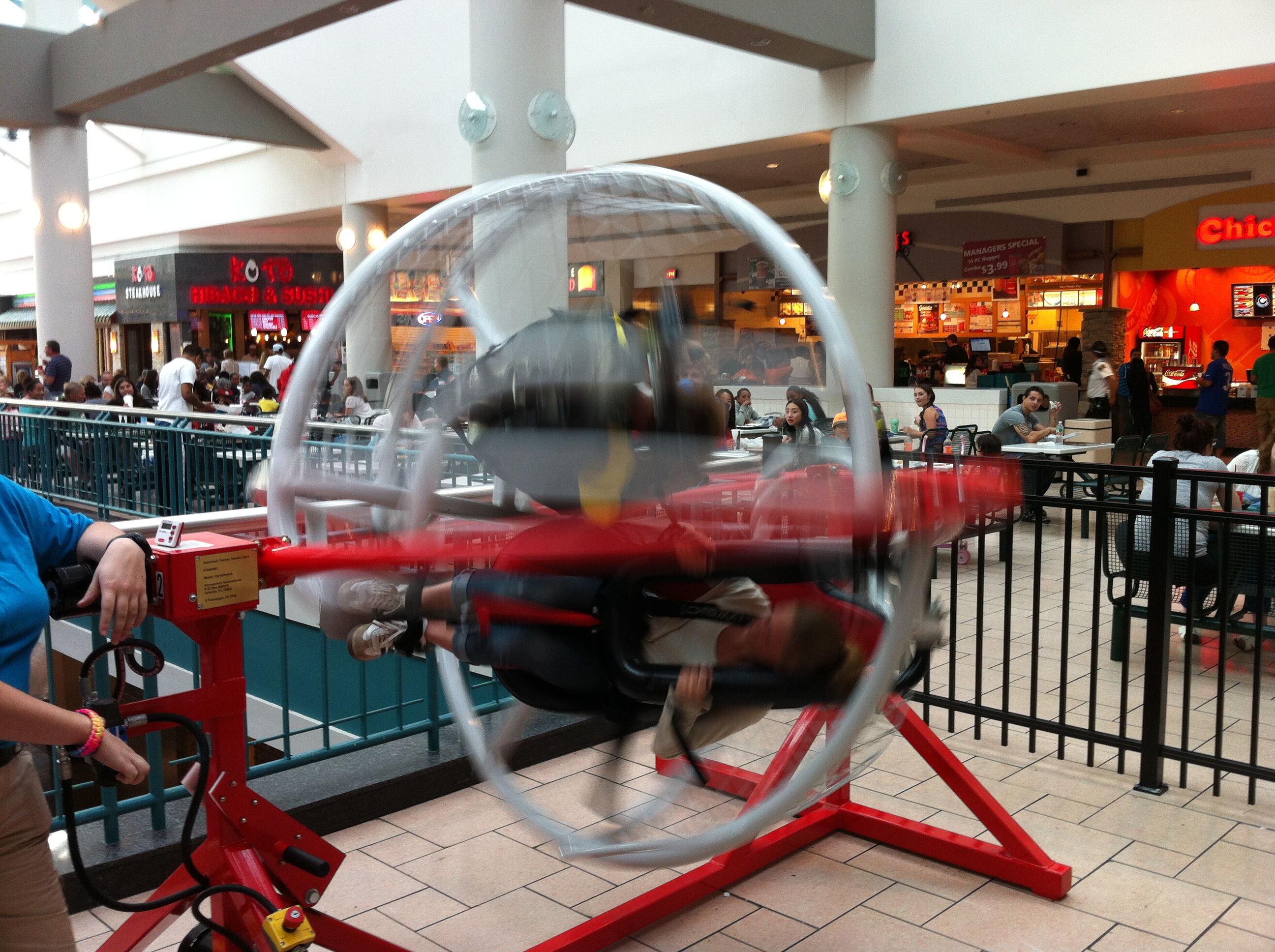 I would spin in a ball at any given time of day just for the fun of it. But putting contraptions in food courts and restaurants….I think they’ll be sorry. Only because food may reappear from consumers if riding the ride after eating.