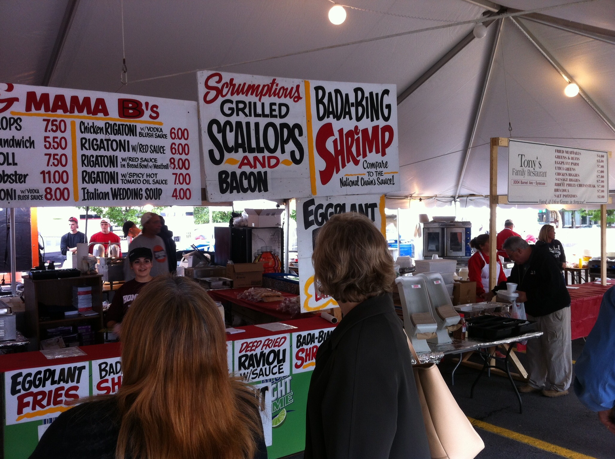 They offered meatballs and eggplant and pizza and panini and heroes and subs and sandwiches and ravioli and braciola and sausage and scallops and shrimp and lobster and chicken and steak and Italian wedding soup. Yes, wings, too. I almost missed the pizza fritte and ice cream trucks while walking back to the car parked in front of the Erie Canal Museum.