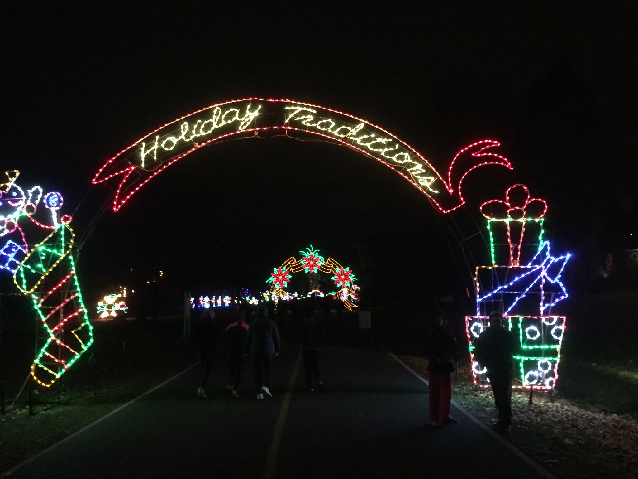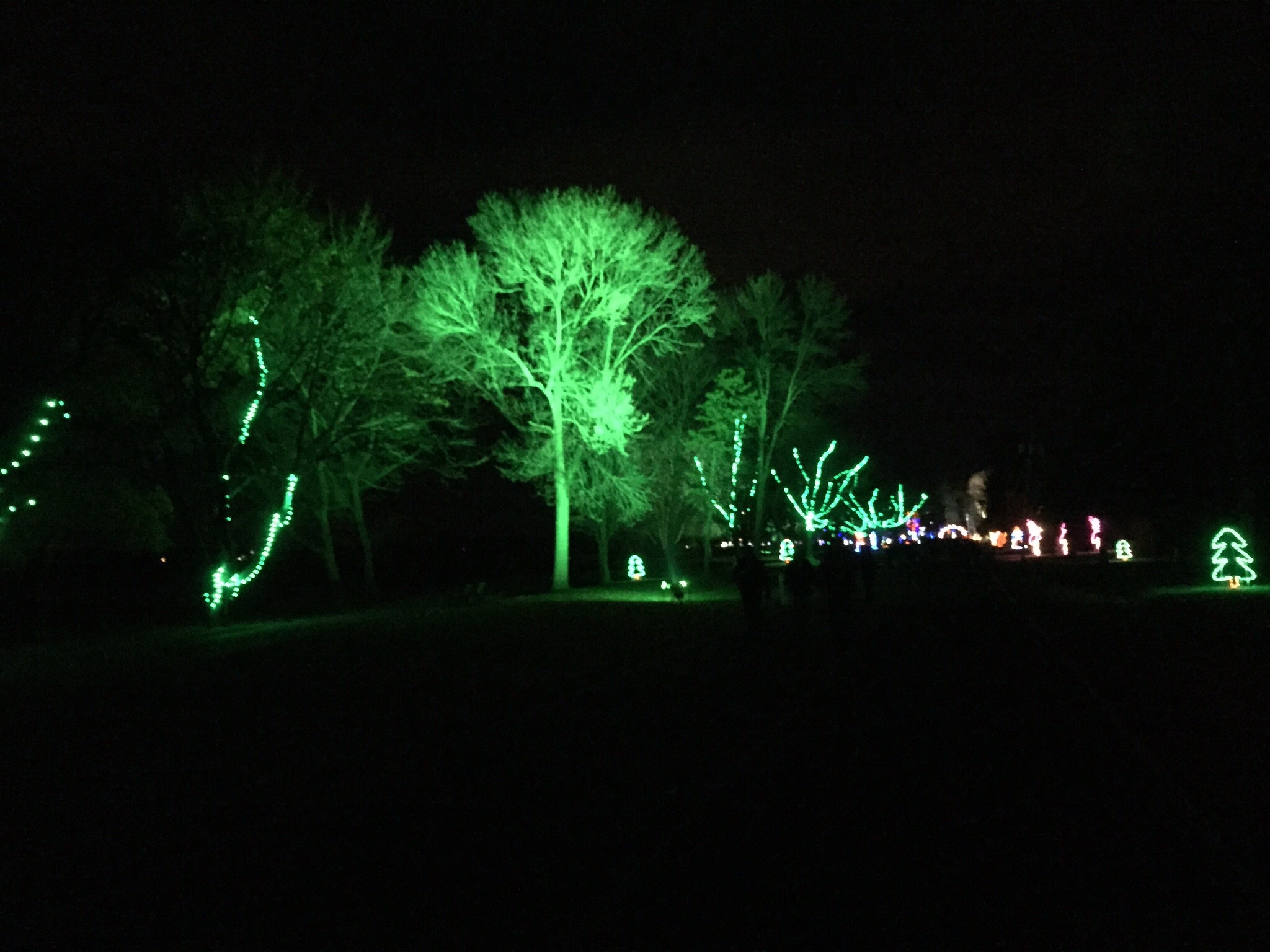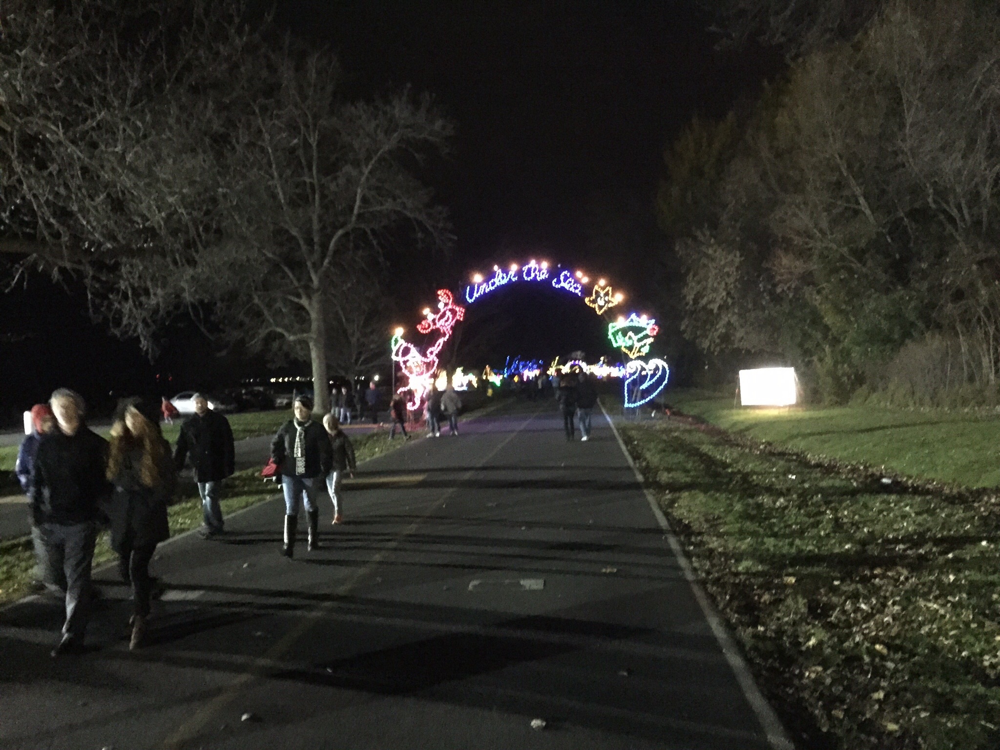 The gates were opened special on Wednesday night for walkers only, and my dear wife Karen threw a fiver in the donation bucket ($2 suggested) to join what looked like many thousands of people who wanted savor the displays in the slower pace. I didn’t try to count the exact amount of people, either, other than to conclude it was a lot as the temperature hovered in the 40s. Thursday night, they did it again and invited dogs, too. Because it was my bowling league night, Ellie B did not get to see the lights.