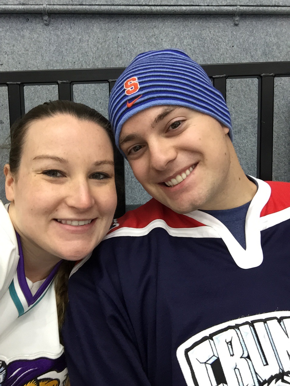 Saturday night, I texted my terrific daughter Elisabeth to ask how she and her wonderful boyfriend George liked their seats at the Syracuse Crunch hockey game. She texted back with the selfie above. How happy these two young adults look! My dear wife Karen and I had received those season-ticket seats for three games in a row from our great friends JoAnn and Brenda, and given the final game to the kids as one of their Christmas presents. Watching their relationship grow stronger — and ours as a family along with Karen’s awesome son Daryl — was my great joy of 2014.