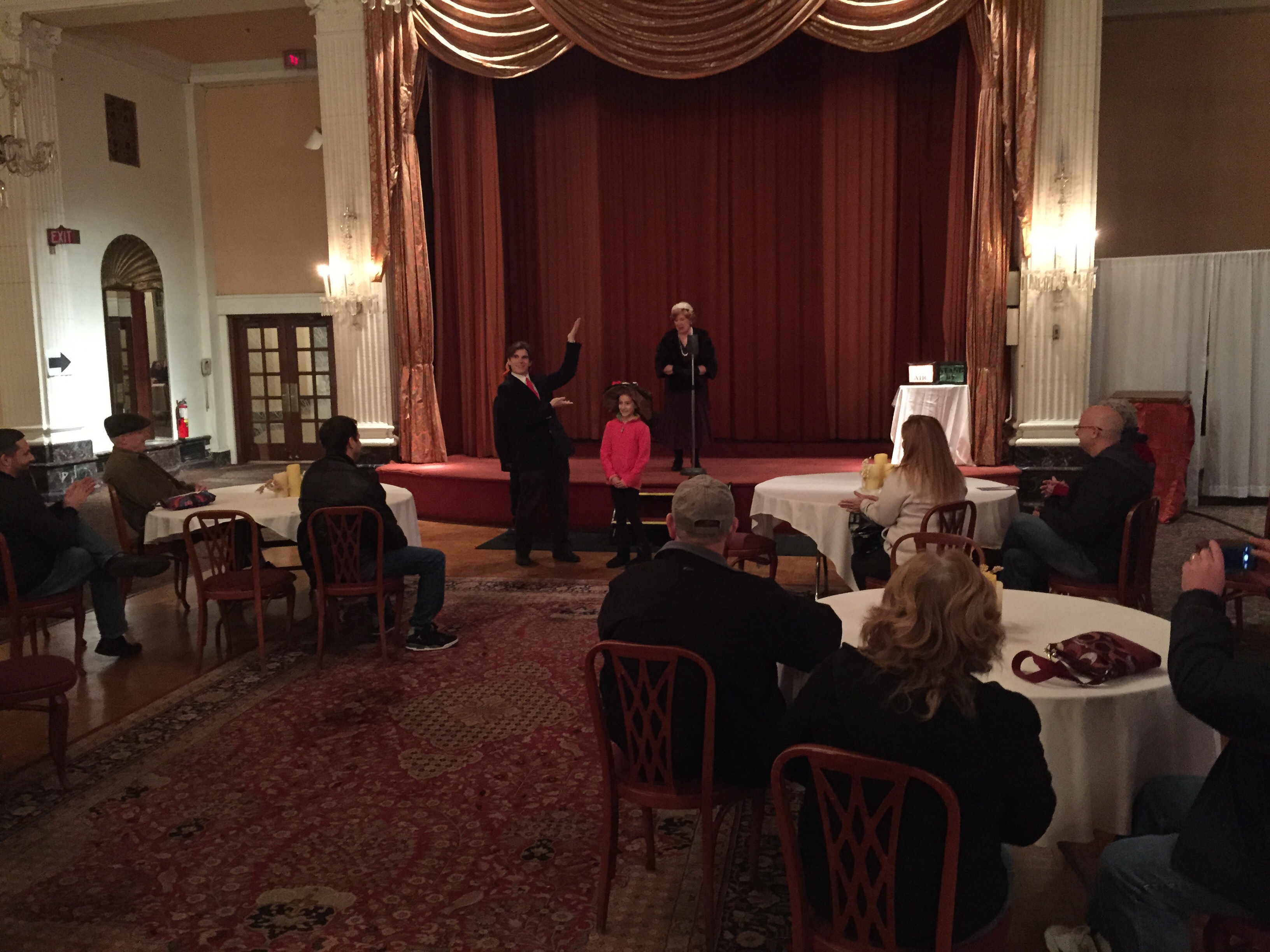 But it wasn’t the kind of ghosts of folks who famously die and hang around these old buildings of ours. No, when I signed up as a “back guide” on the last Saturday of 2014 and walked the grounds of the big old hotel that was build in downtown Syracuse in 1924, it was to hear my friend Theresa Constantine be among the guides winding people through big rooms to remember grand stories and see and hear people dressed in period tell tall tales.