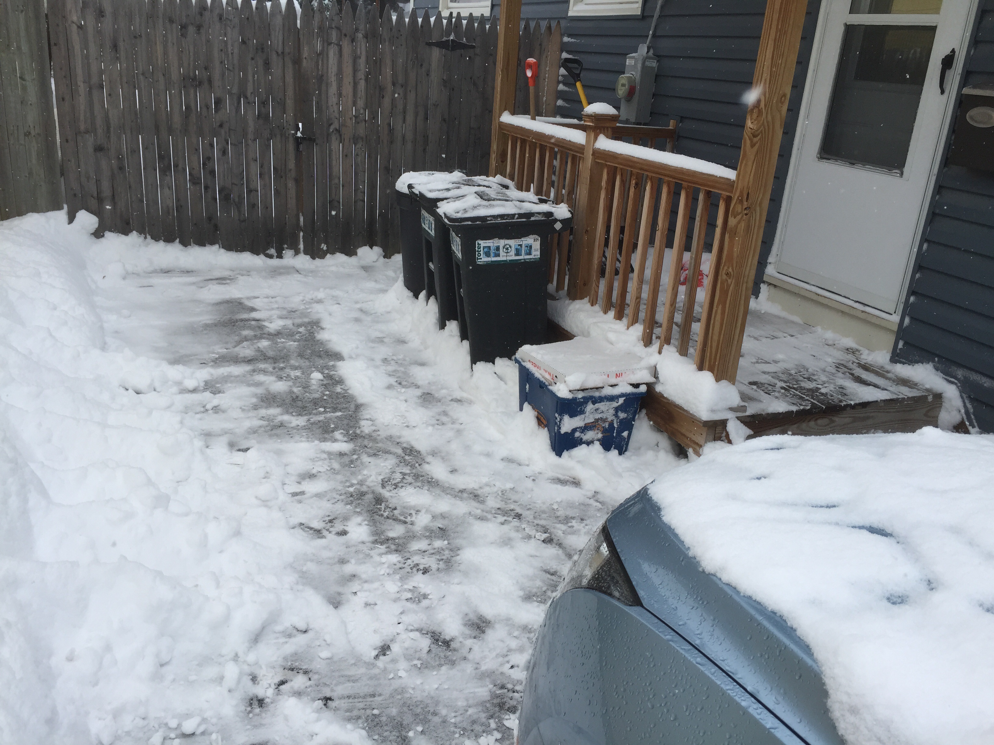 I cleared the top of the driveway and the side porch, our preferred entrance to the house, which takes us into the kitchen.