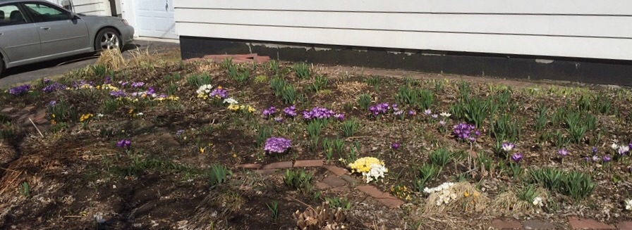 A happy post! My New Hampshire sister was bemoaning recent light snow, but I don’t understand her fuss: Spring sign there is less black earth, and more black flies. I’ll take the bulbs, minus the bugs.