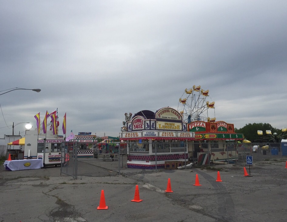 It’s too early for a big crowd, but the operators are getting the big rides ready by pulling the levels and spinning the wheels.