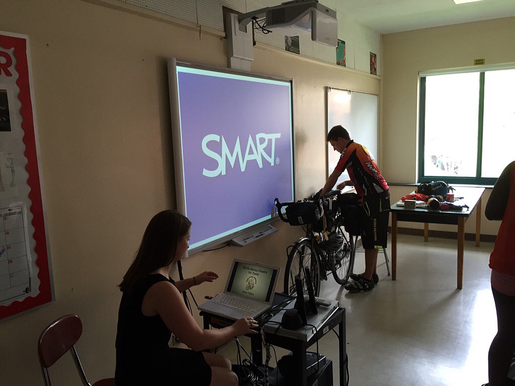He quickly told them how he raised funds by talking in schools, churches and camps, and how people could click sites and pledge money, beating the buzzer to end the class.