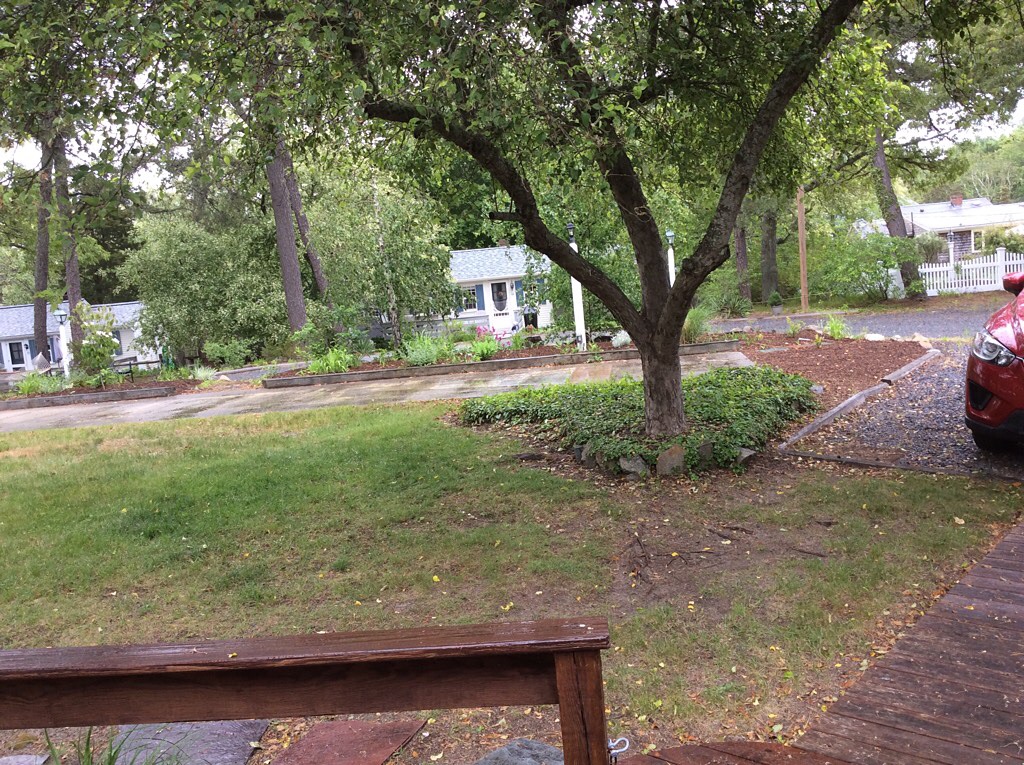 Rain. My dear wife Karen and I don’t mind much waking up to this sight out the front deck of the lovely cottage we’re renting from our dear friends Juli and Lisa.