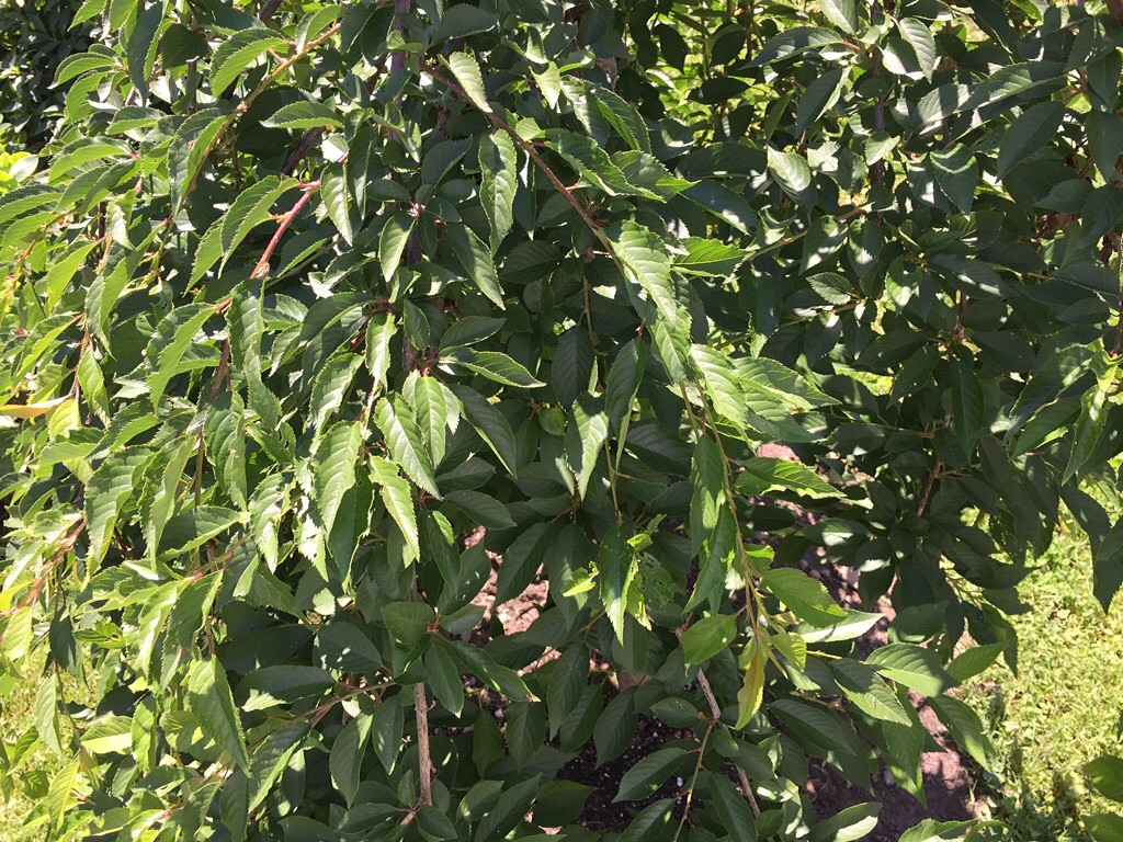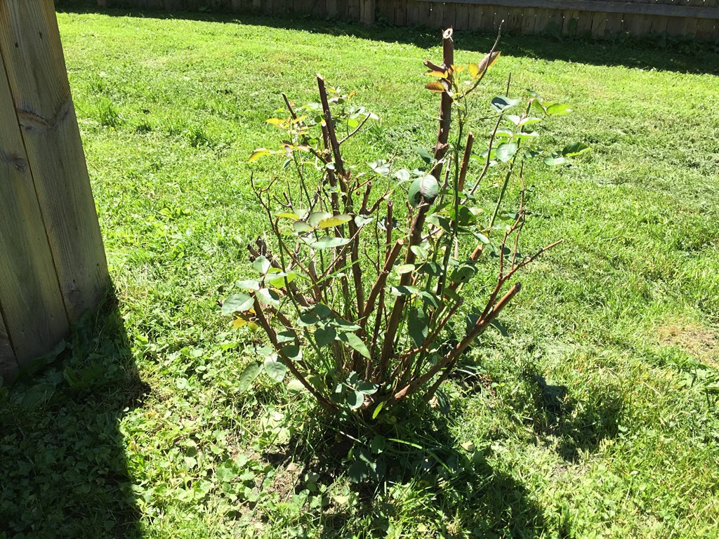 Remember I reported that just prior to departure to Cape Cod and our annual pre-tourist rush week in the Happy Cottage that I noticed red fruit on the branches of our just-transplanted front-yard Snow Fountain you all helped name Cherry Cherry?