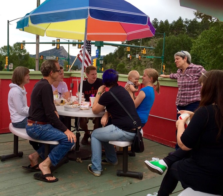 That first Thursday night, though, mere hours from landing and driving from Denver, my dear wife Karen and I met up with the families of brother Steve and sis Jana at the main drag pub/grub joint Local’s. We were drawn by the name only. It turned out to be an Italian spot. People were so happy seeing each other for the first time in many, many years that the food didn’t matter. The beer and wine went down easily. Introductions were made for daughter Elisabeth, boyfriend George Three and I. We three New Yorkers did not much like our pizza. No matter.