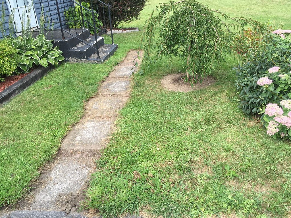 First off, she chopped away the grass that had overgrown our stone walk that juts off the driveway.