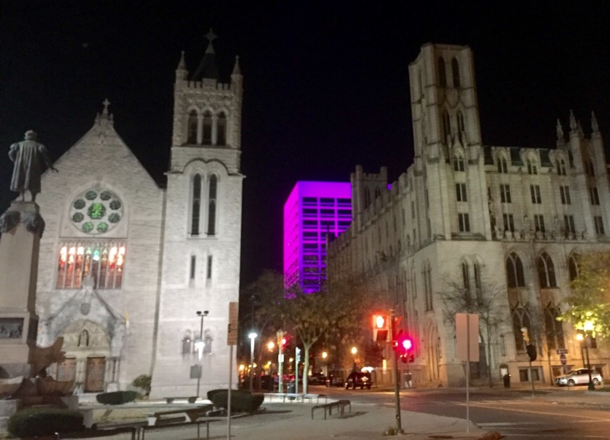 Leaving the Syracuse Crunch hockey game in downtown Syracuse last Friday night, a bright building stood out among the usual skyline as my dear wife Karen and I walked from the Onondaga County War Memorial to our car parked in our favorite little lot a block away.