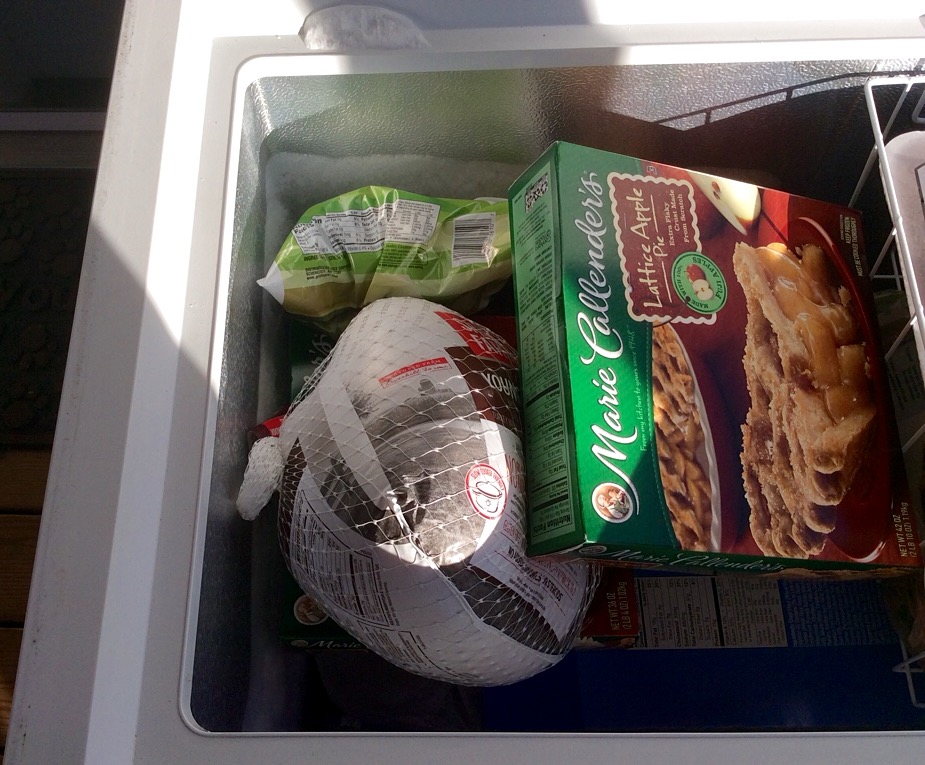 Before the big day, stocked in the back porch freezer.