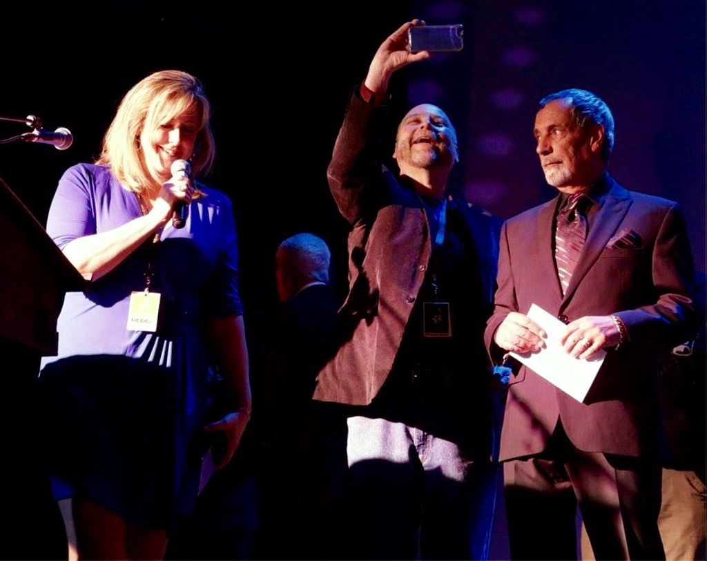 Well, the house lights can be off at certain times. Calm, even, against the wall with my co-presenters Julie Briggs and Buke Babikian as we hovered several feet back for two other trophies to be handed out.