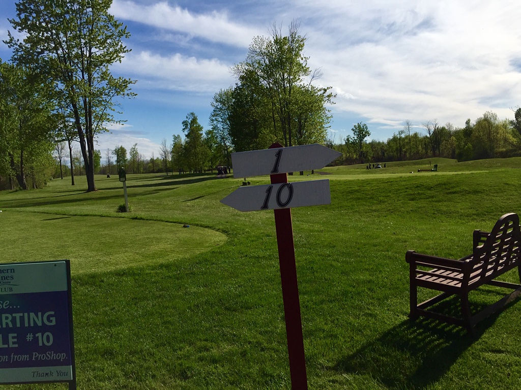 Northern Pines had changed its routing since last season. What used to be the eighth hole had become No. 1. This new sense of order makes much more sense for the map of play. We started at No. 10, though, because that hole was clear while two groups were on the new No. 1. Maybe next time I sub in the (really) little league, I’ll get to see the newly routed set of nine.