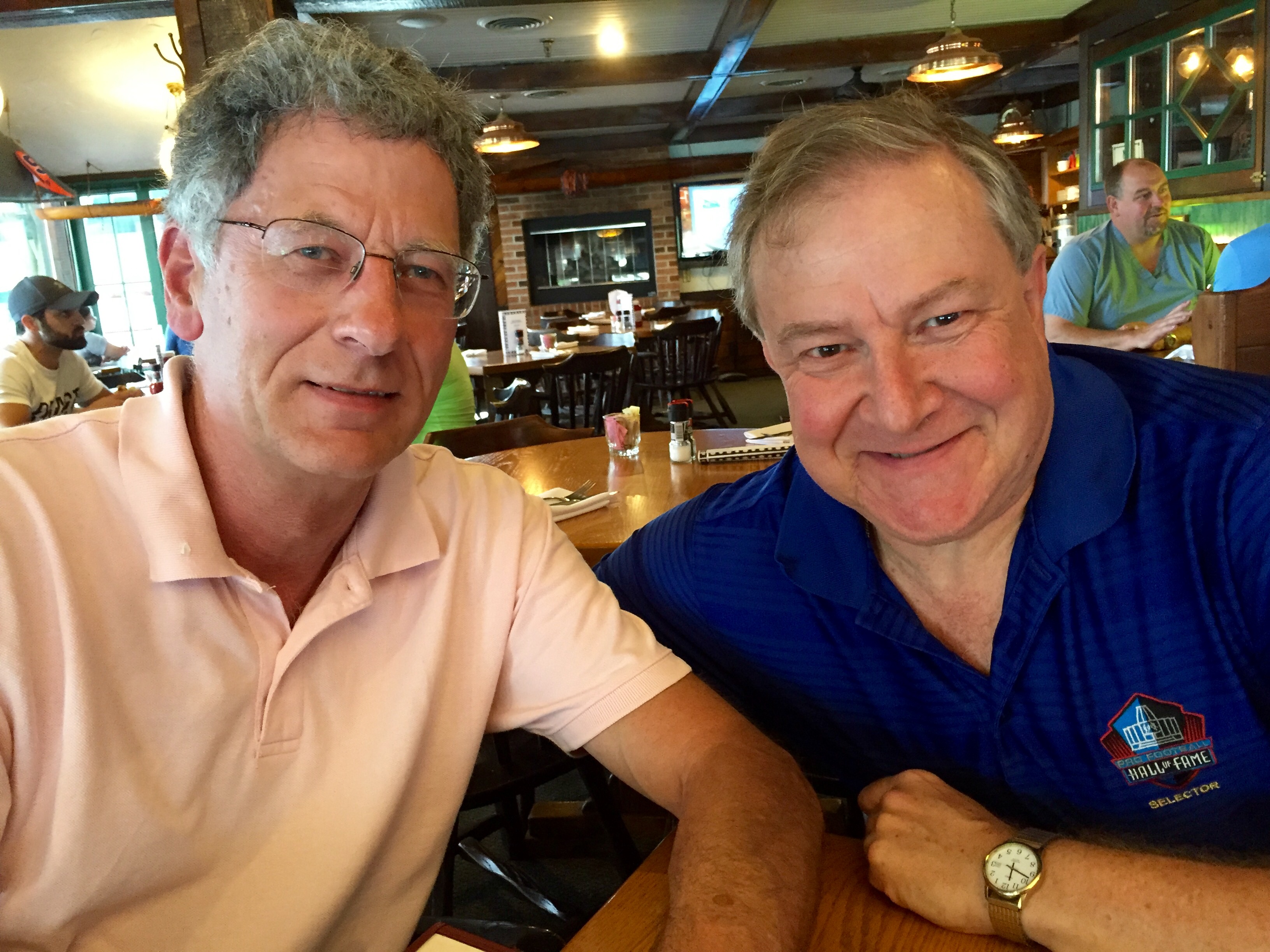 His shirt comes from the pro football hall of fame. He’s on the nominating committee. He was president of the NFL writers association from his days with the Washington Times!