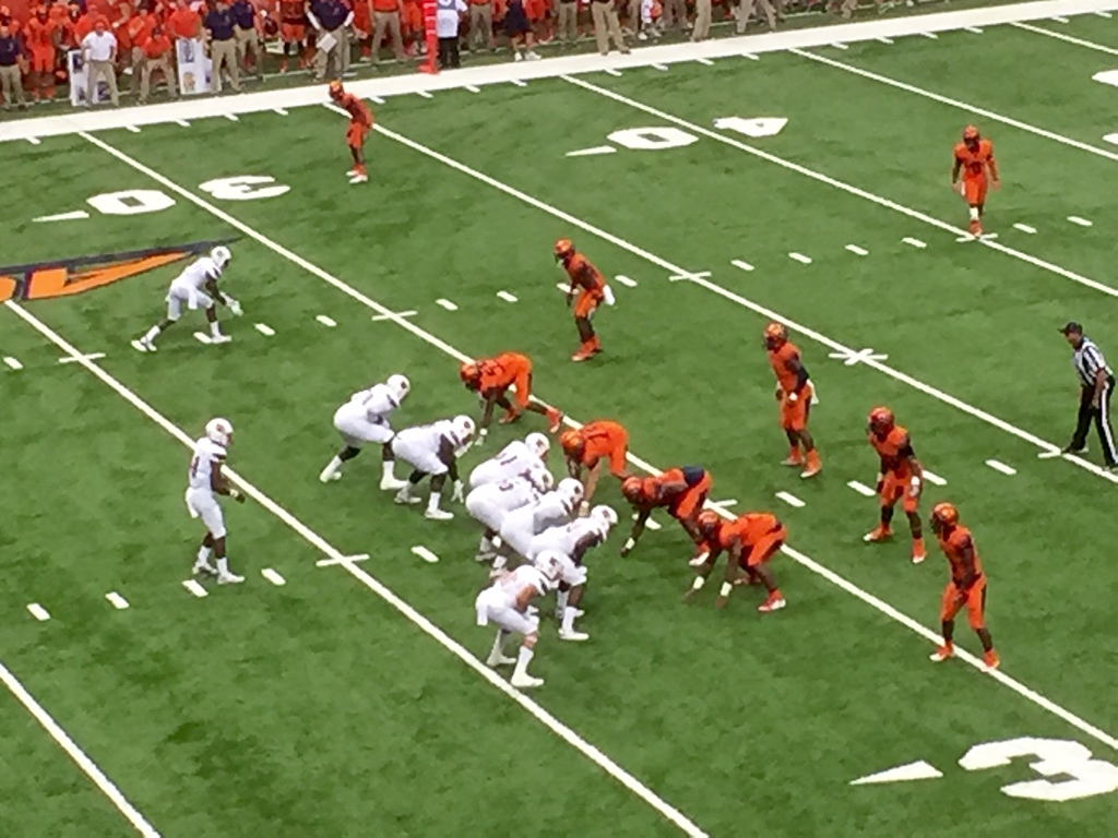 I caught the end of the last scoring drive for the Orange that made the crowd – and us – stay through the steamy halftime. Yup, it was 90º F at least in the Carrier Dome. And then Louisville turned it on in the third quarter and rest of the game to win 62-28. We did not stay until the end, I do admit.