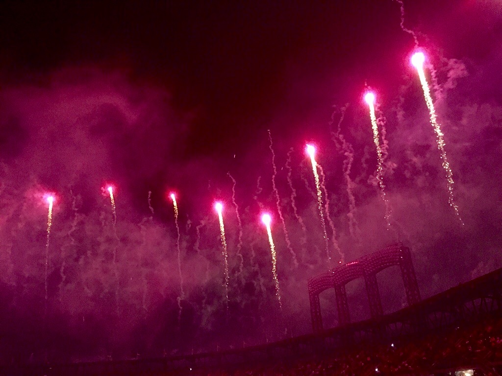 When the smoke cleared – well, the smoke was still hanging over the field when the fireworks ended and we made our way out with 40,000 other fans. We were stuck in a traffic jam trying to exit the parking lot for an hour. I still loved the fireworks.