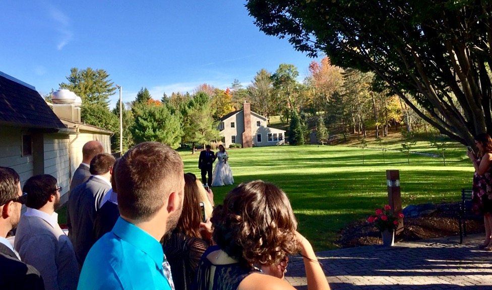 The weather was gorgeous this mid-October Saturday on the backyard patio of the refurbished old house, the sky blue as Kristin’s father led her to her groom on a long walk on green grass.