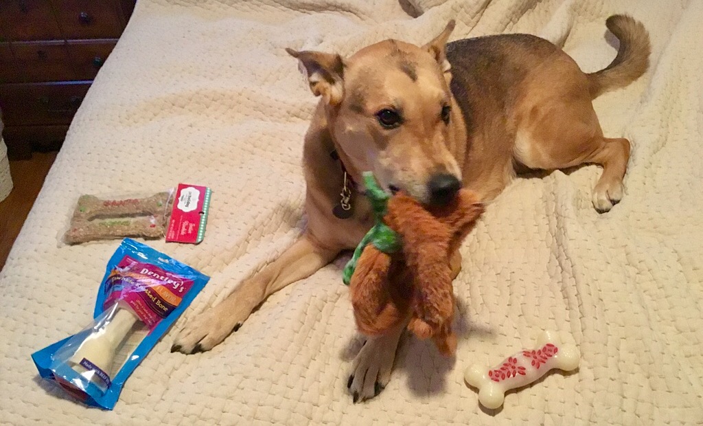 She had plenty of presents to open, thanks to my dear wife Karen, who seemed to not pass up anything that she thought our cherished rescue mutt might like in this first holiday in the Liverpool neighborhood of Galeville.