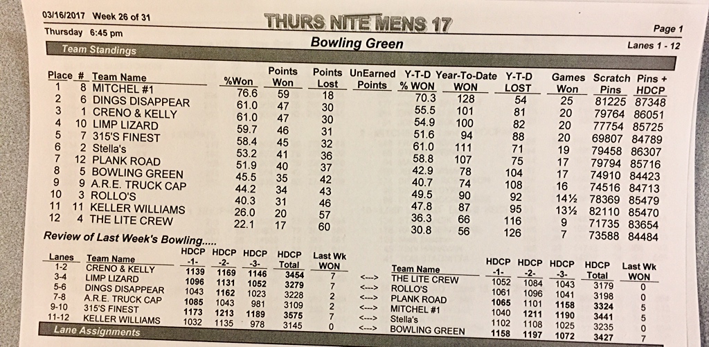 We’re coming down to the final few weeks in the Thursday Night Men’s League at Bowling Green.