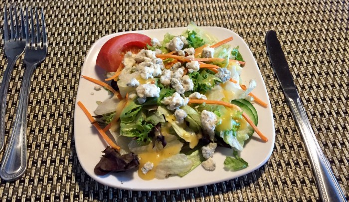 We both picked Italian with crumbly blue to top our starter salads, which also came with the entrees.