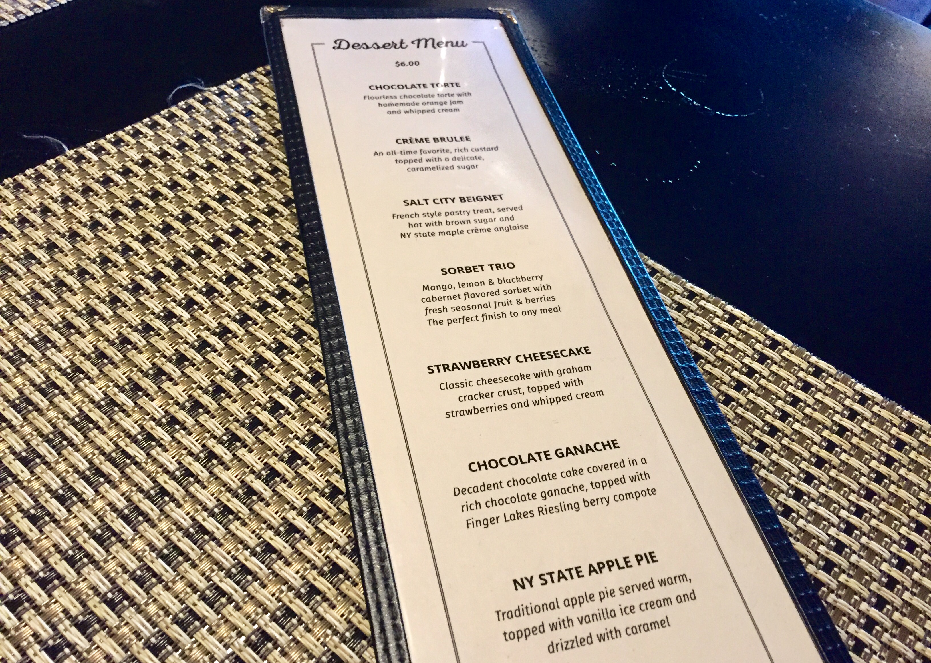 We read the ample dessert menu, but told our delightful server that we were taking a pass.