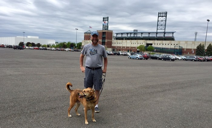 Our cherished rescue mutt’s ears went back when her beloved George Three piled out of the car in the NBT Bank Stadium parking lot with my terrific daughter Elisabeth and … Bailey. Another dog!