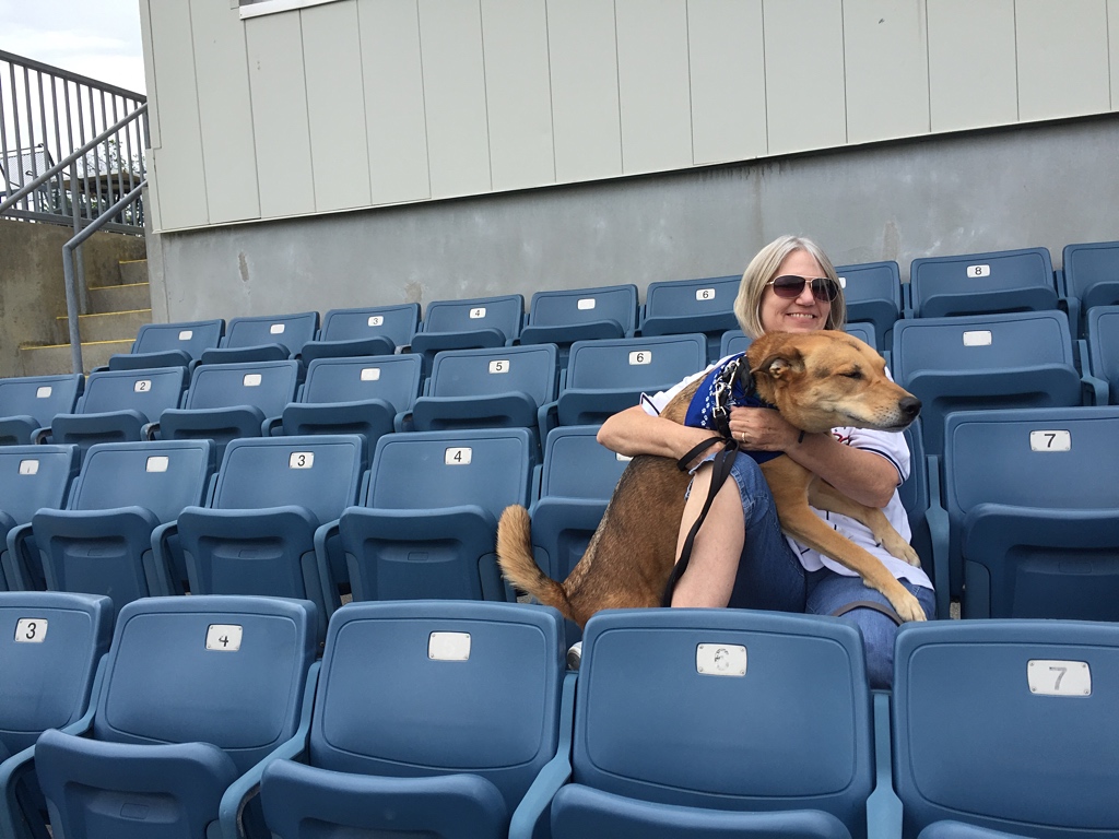 Our cherished rescue mutt’s ears went back when her beloved George Three piled out of the car in the NBT Bank Stadium parking lot with my terrific daughter Elisabeth and … Bailey. Another dog!
