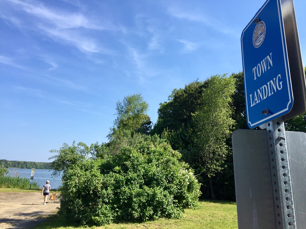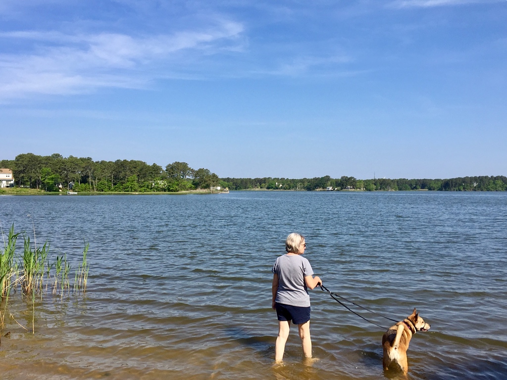 This dog now loves any body of water, even this little pond, or lake, at the public boat landing.