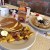 My pancakes were as light and fluffy as I remembered. The eggs were not over easy, though. Not even medium. More hard. I wolfed them down regardless. The bacon and ham slice on my pork platter were divine. The andouille sausage and Canadian bacon didn’t do it for me. Live and learn.
