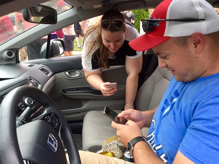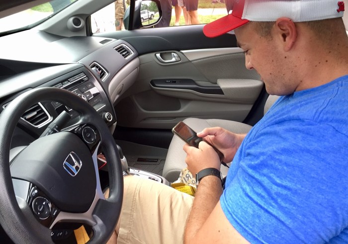 Good thing George was looking at his phone to monitor the Pokemon Go situation.