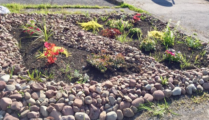 This is one interesting way to get the most out of small rocks and patches of flowers in a front yard.