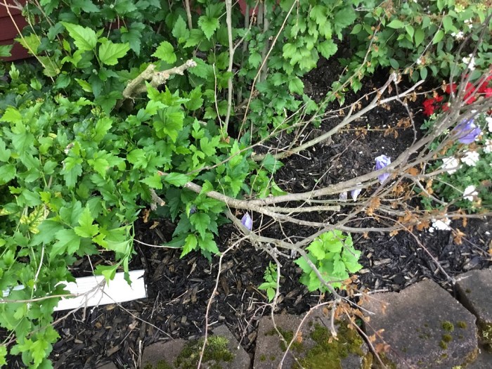 Love Rose Of Sharon bushes. I’m so glad you let it grow bro Mark. We had one when I was growing up, but it was just one color, pink. You hit the jackpot with a duo there. Must be something in the soil, like the hydrangeas my Mom had that were pink and blue, depending on the nitrogen content. Or maybe the hydrogen content. Or oxygen? My overworked brain cell barely remembers my name, so it could be one or more of the above, but probably the first guess.
